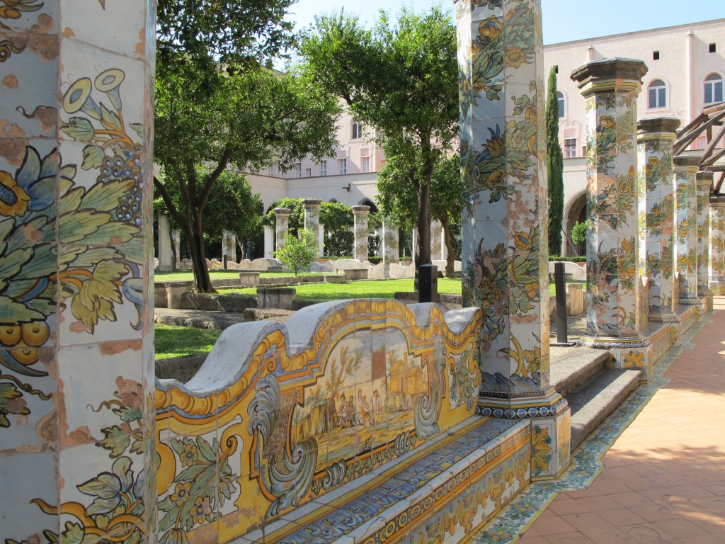 Därefter besöker vi det gamla klostret Santa Chiara uppfört år 1310 på initiativ av kung Robert av Anjou och hans hustru Sancha av Mallorca. Santa Chiara är känt för sina fantastiska majolikaplattor vilka dekorerar den vackra klosterträdgården. Kyrkan som uprsprungligen byggdes i gotisk stil fick en barock prägel under 1600-talet. Efter att den bombades och förstördes under andra världskriget restaurerades kyrkan till sin ursprungliga gotiska stil.