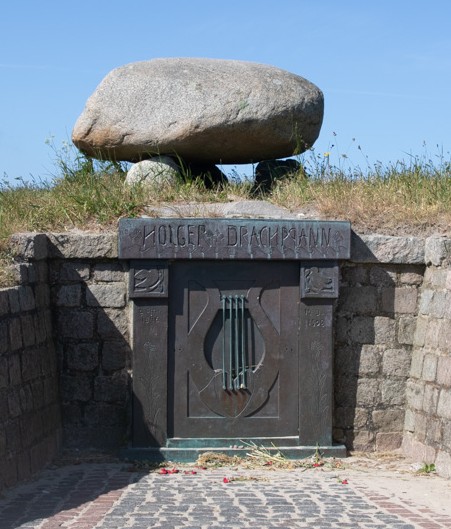 Efter hans död i Hornbæk 1908 fördes urnan till Skagen, där en begravningsprocession med flera tusen människor följde den till Grenen. Gravkammaren i koppar är utförd av P.S. Krøyer. Vi åker ut till Grenen för att se graven och platsen där Skagerrak och Kattegatt möts.