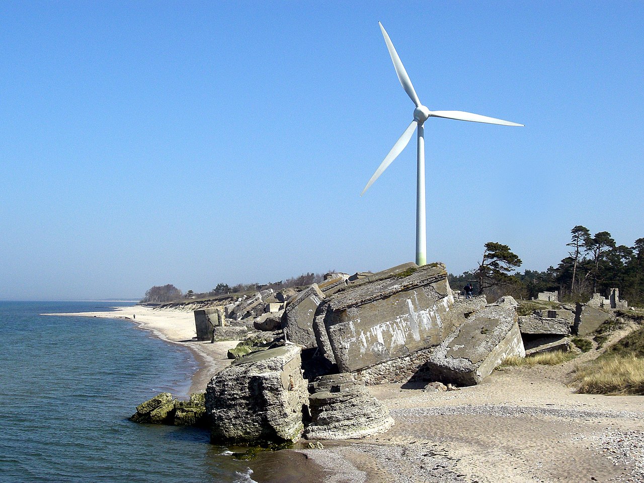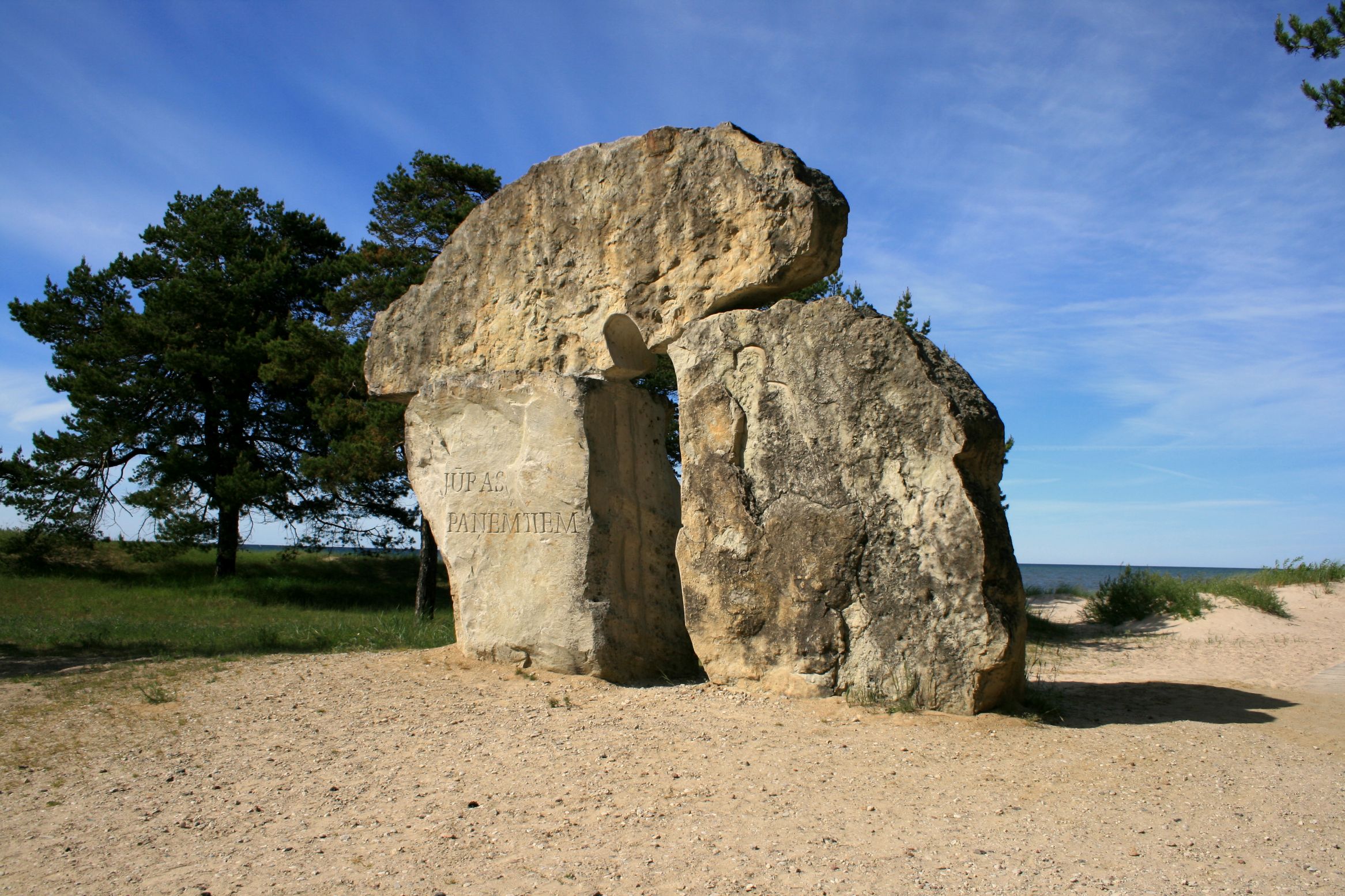 Domesnäs, Kurlands vackra norra udde. Stenmonumentet på stranden vid Domesnäs som rest till minne över alla de som fått havet som sin grav.