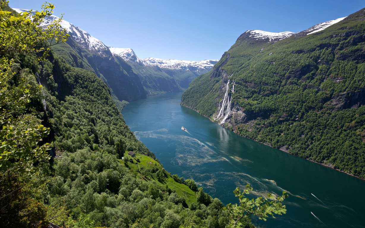 Väljer man att vara kvar på fartyget under dagen får man uppleva Geirangerfjorden från fartygets däck. Vi färdas från det öppna kustlandskapet till de trånga och dramatiska fjordarna. Resan går genom tre fjordar. Geirangerfjorden räknas ofta som en av världens mest spektakulära fjordar och är ett Unesco-världsarv som imponerar med branta klippor, majestätiska vattenfall och grönskande omgivningar. Gamla gårdar ligger utspridda i landskapet, glaciärtäckta fjäll reser sig mot skyn och charmiga byn Geiranger (30 minuters stopp). Förutom den vackra utsikten från fartyget kommer geologiintresserade också att uppskatta den välbevarade ytstrukturen i berggrunden som syns tydligt i de 800 meter höga dalväggarna. Det har bott människor vid fjorden sedan vikingatiden med fiske och jordbruk som utkomst. Under 1800-talet började bönderna föda upp får på de grönskande betesmarkerna. Från fartyget ser vi flera av de gamla gårdarna i fjorddalen.
